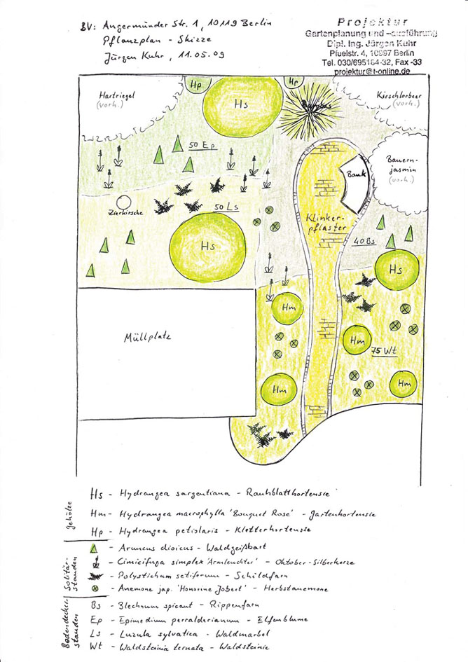 Nicht jede Aufgabenstellung erfordert zwingend die Darstellung in einem Gartenplan (z.B. die Neupflasterung Ihrer Garageneinfahrt). Manchmal aber ist es selbst für einen kleinen Hinterhof hilfreich, den angestrebten Zustand zu visualisieren. Gerne ermittele ich im persönlichen Gespräch mit Ihnen die Wahl der Mittel und des damit verbundenen Aufwandes. Von der Handskizze bis zur CAD-Zeichnung - das Planungsinstrumentarium passe ich der jeweiligen Anforderung an.